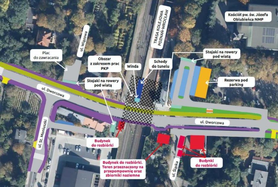 Jak informowaliśmy wcześniej, projekt zakłada przebudowę około 640 metrów dróg w rejonie ulic Dworcowej, Wiązowej, Moniuszki i Śląskiej oraz likwidację obecnego przejazdu kolejowego. Tunel ma służyć pieszym, rowerzystom i kierowcom.